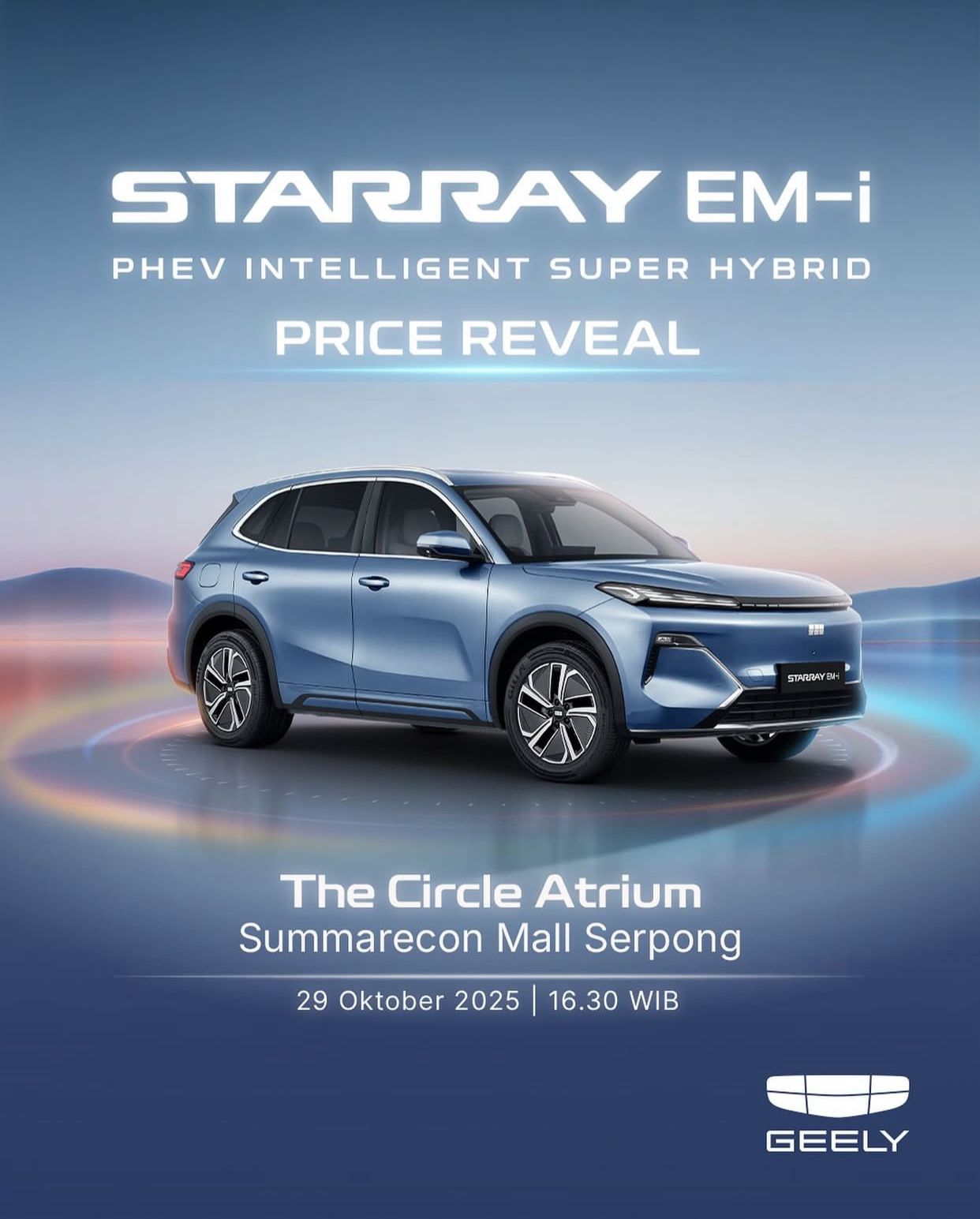 Read More →SUV Intelligent Super Hybrid yang dinantikan, STARRAY EM-i, siap memukau Anda! Geely mengundang Anda untuk menyaksikan acara pengumuman harga resmi dan melihat lebih dekat...