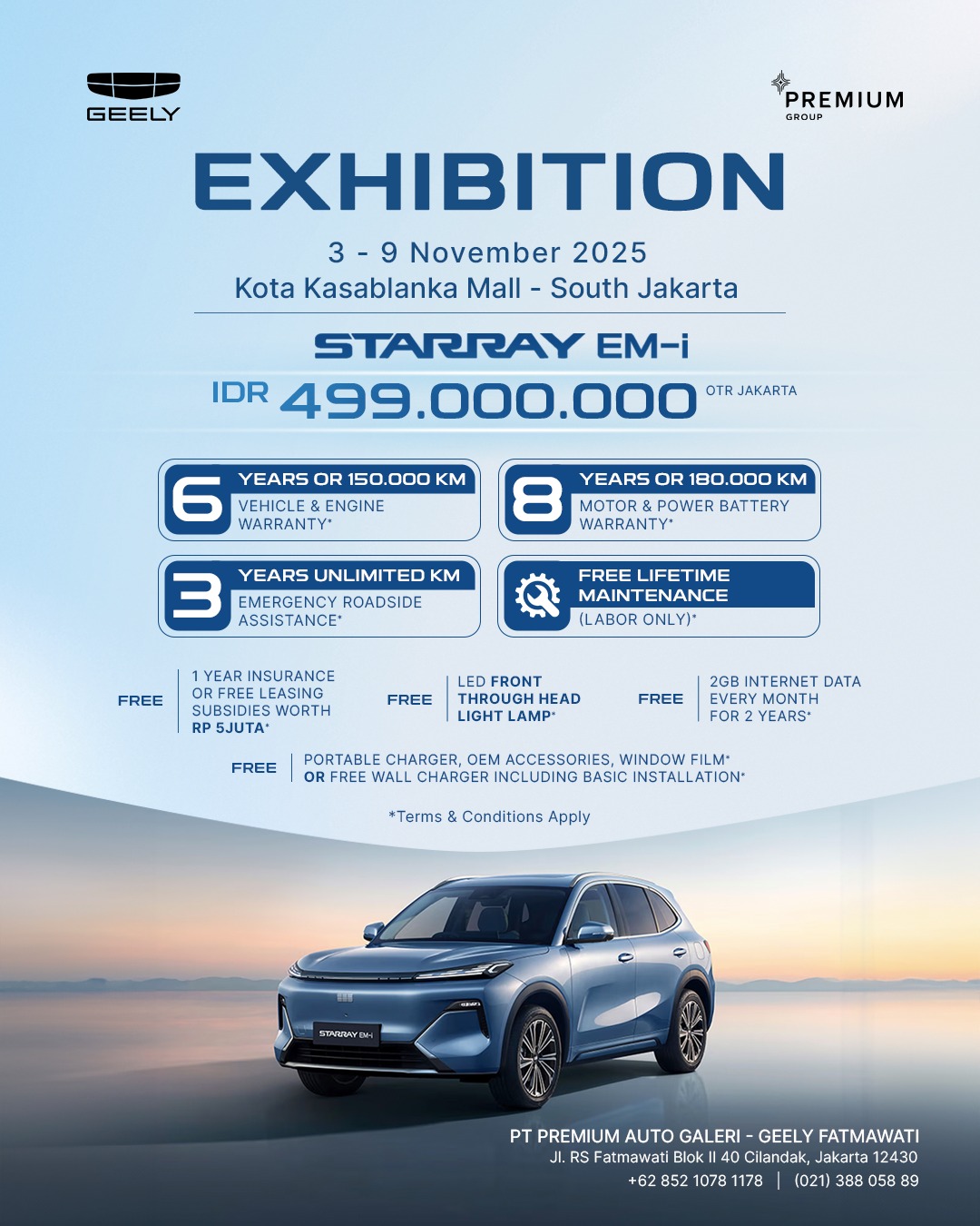 Read More →Penggemar otomotif, bersiaplah! Geely melalui PT Premium Auto Galeri sedang mengadakan pameran eksklusif untuk memperkenalkan model terbarunya, Starray EM-i. Pameran ini berlangsung dari 3...